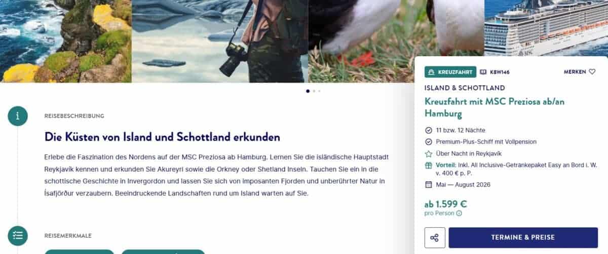 Start- und Zielhafen dieser eindrucksvollen Reise ist Hamburg – bequem erreichbar und perfekt für einen entspannten Beginn eures Urlaubs. Im Preis enthalten sind sämtliche Mahlzeiten, die Trinkgelder sowie ein attraktiver Sonderrabatt über Seereisedienst. Die Reise findet im idealen Zeitraum für Sommerferien statt – nämlich zwischen Mai und August 2026.