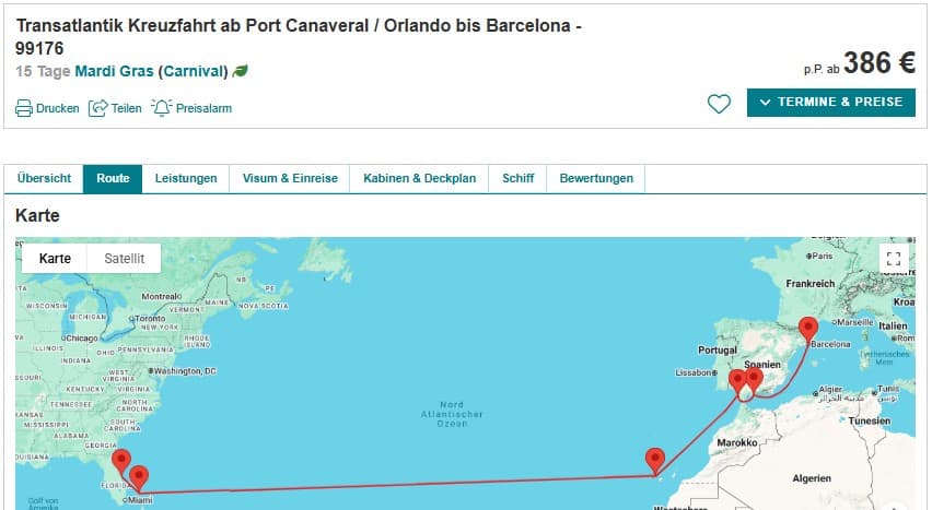 Ein echter Geheimtipp für Kreuzfahrt-Fans mit Fernweh: Im September 2025 bringt euch die Carnival Mardi Gras auf einer Transatlantik-Kreuzfahrt von Florida (Port Canaveral / Orlando) über die Bahamas und Kanaren bis ins sonnige Barcelona – und das ab nur 386 € p.P. in der Innenkabine!