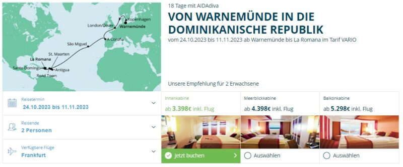 Kreuzfahrt mit AIDAdiva von Warnemünde bis in die Karibik