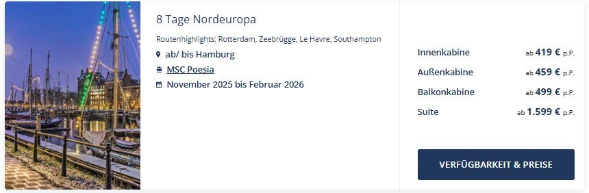 Unser persönlicher Tipp: Diese Kreuzfahrt ist ideal, um einige der spannendsten Städte Westeuropas auf komfortable Weise zu entdecken. Besonders in den Wintermonaten, wenn Städtereisen an Land oft wetterbedingt weniger angenehm sind, bietet eine Seereise die perfekte Kombination aus Entspannung und Kultur.