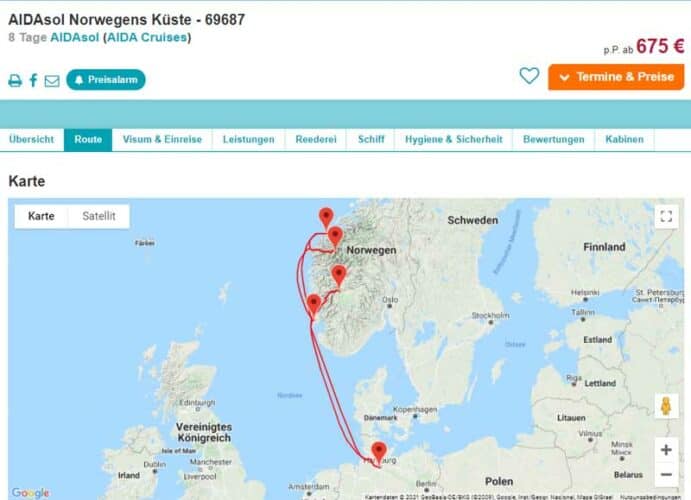 - Häfen: Hamburg, Hausgesund, Olden, Alesund, Eidfjord, Hamburg