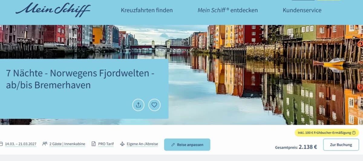 Die Reise beginnt und endet im Hafen von Bremerhaven. Dazwischen erwarten euch spannende Stopps in Norwegen sowie zwei entspannte Seetage, die ideal sind, um die Annehmlichkeiten der Mein Schiff 3 zu erkunden.