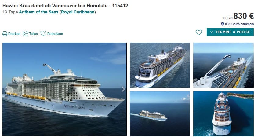- 13-tägige Route Vancouver – Honolulu: ab €830 p.P.