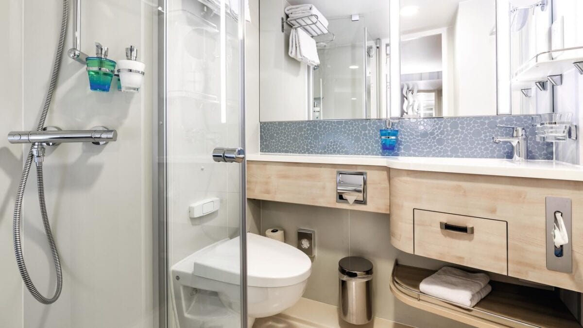 - Kabinen: Innen-, Außen-, Balkonkabinen und Suiten in verschiedenen Kategorien
