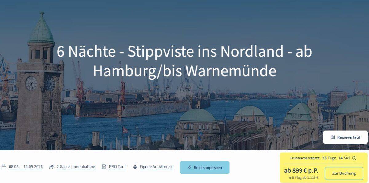 6 Nächte Nordland-Stippvisite ab Hamburg bis Warnemünde