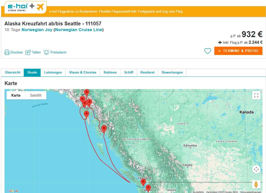 Diese 10-tägige Alaska-Kreuzfahrt mit der Norwegian Joy ist ideal für Naturliebhaber, Abenteurer und Ruhesuchende gleichermaßen. Die Balkonkabinen bieten die perfekte Gelegenheit, Alaskas atemberaubende Landschaften in privater Atmosphäre zu genießen. Bucht frühzeitig, um euch die besten Preise und Kabinen zu sichern, und vergesst nicht, wetterfeste Kleidung einzupacken – Alaska ist bekannt für sein wechselhaftes Wetter.