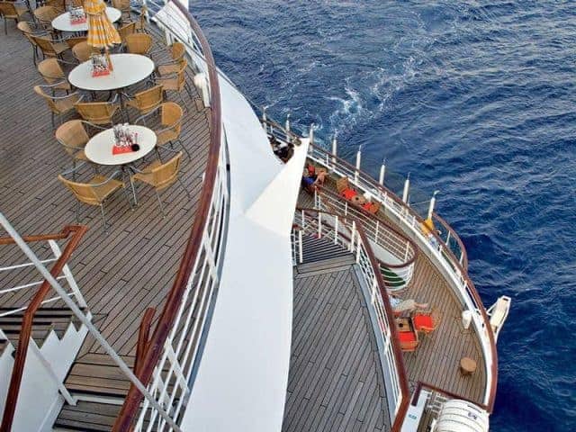 - Deck 6: Kabinen unterschiedlicher Kategorien, Tender- bzw. Rettungsboote, Rezeption, Internet-Corner, Kids Club mit eigenem Kinderpool